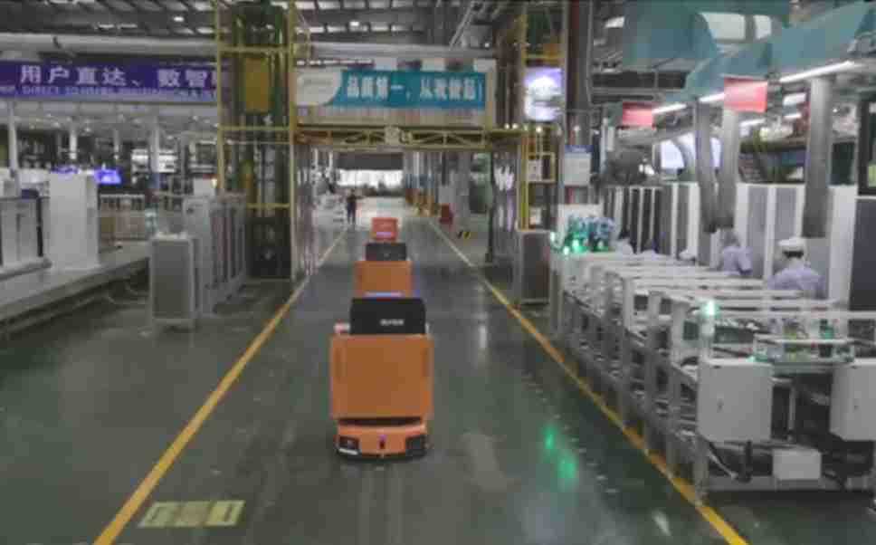 为车载冰箱物流配送打造的智能解决方案,,,包含产中物流通过潜伏举升AMR搬运至线边,,,,产后成品物流智能仓储,,,,流程包含产中物流智能齐套入库,,线边安灯叫料AMR智能配送至线边,,,成品入库、、出库,,,通过无人堆高车机器人,,,,智能仓储管理替代人工作业管理,,,,实现更高存储、、更高效率、、更具柔性化的解决方案。。